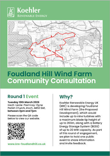 KRE is committed to meaningful, ongoing community engagement and will host two consultation events for Foudland Hill Wind Farm in 2026.
